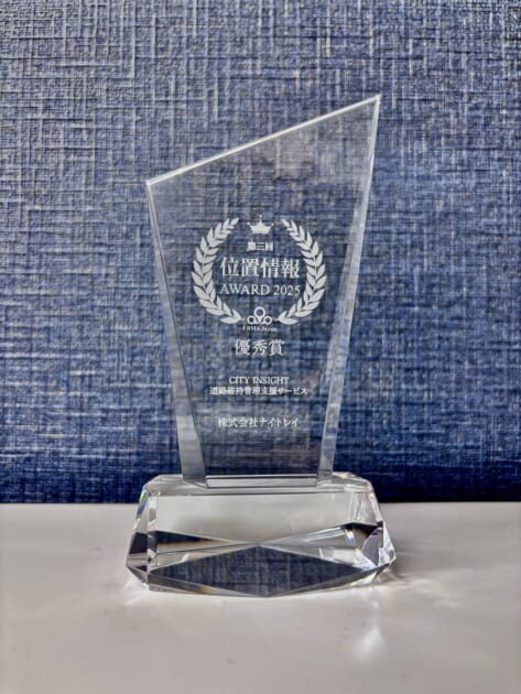 ナイトレイは、2025年5月にリリースした「CITY INSIGHT 道路維持管理支援サービス」が高く評価され、「第3回 位置情報アワード2025」で優秀賞を獲得しました。